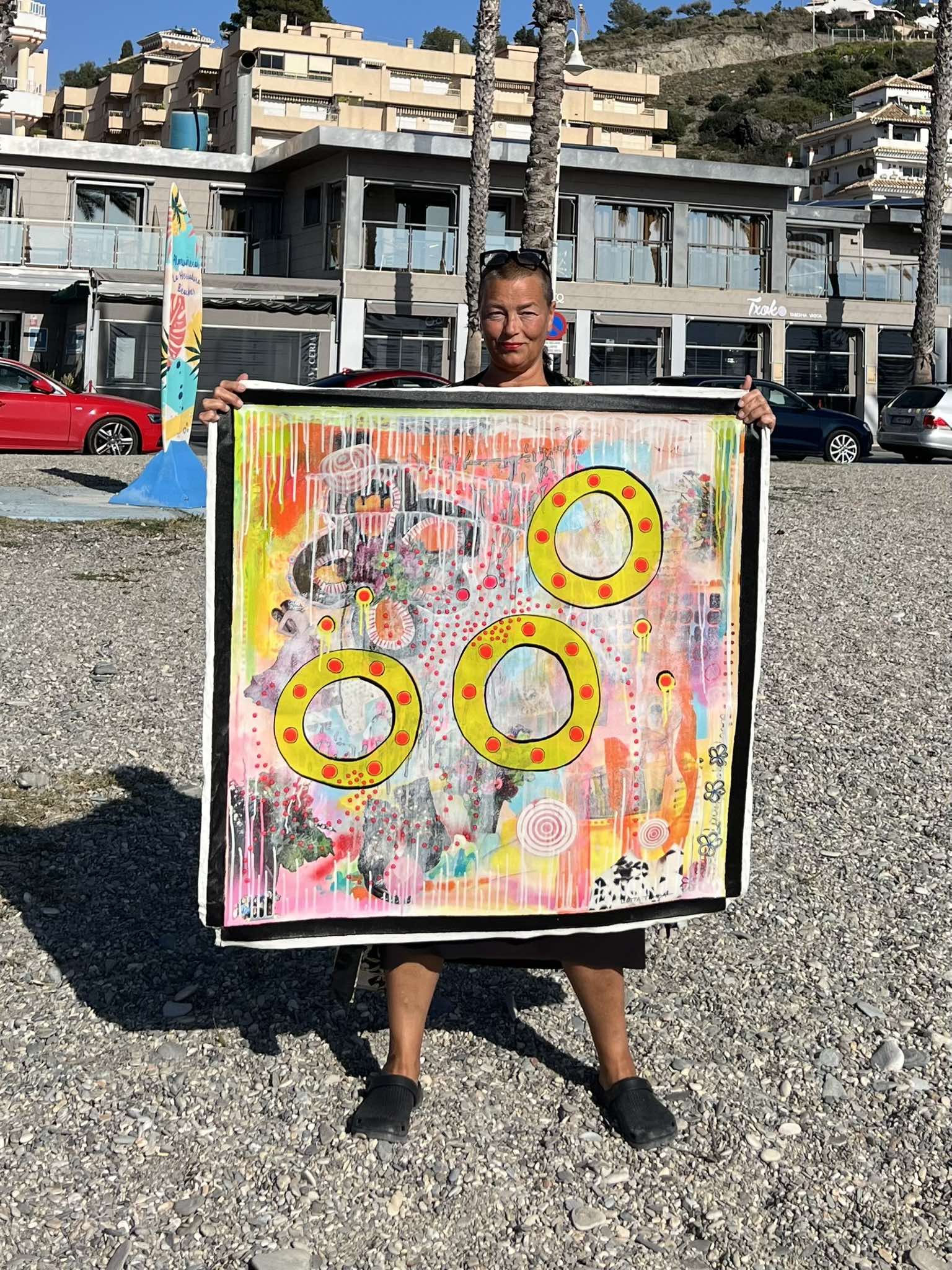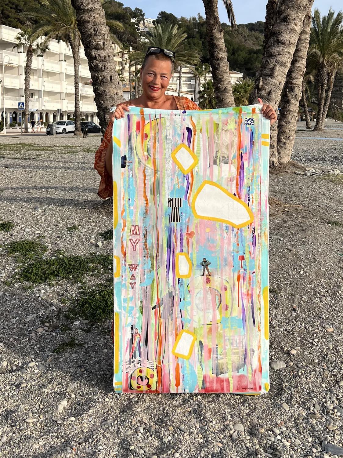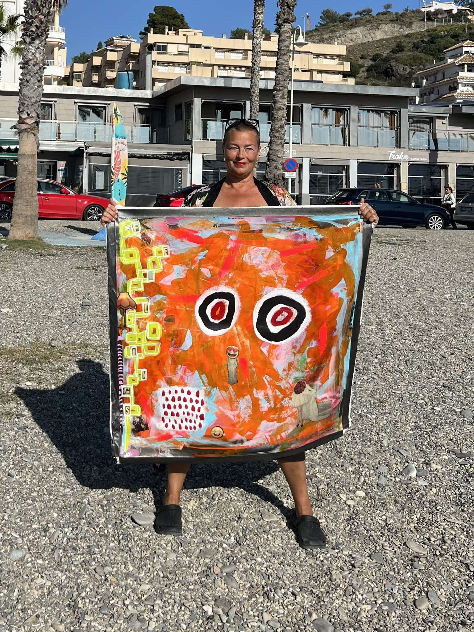 Just nu finns ett antal stora och små tavlor med mig i La Herradura, Spanien. Jag tog av de från ramarna, när jag var på ”besök” i Sverige i höstas, och lät dom få följa med på flyget tillbaka till Spanien. Jag visste inte om jag skulle stanna i Spanien eller något annat land så det kändes bäst att ha tavlorna med mig utifall jag får några bra idéer för vad jag kan göra med dom. Plus att jag inte har någon bra förvaringsplats i Svedala. Hoppades kunna sälja några alster som de är eller göra något annat kreativt med dom. Det är målade på canvas… alltså tyg… som jag kanske skulle kunna sy fast på mina kommande galna väskor eller kläder. Det visar sig vilka idéer jag får. Allt är ju möjligt. Men de största tavlorna skulle passa bra på hotell, restaurang eller i hem med plats för större väggdekorationer. Dessvärre har jag inte hittat några bra ställen och idéerna lyser med sin frånvaro. Det lutar åt att de åker med hem till Sverige i april om de inte säljs här i Spanien innan… Vill du köpa några tavlor och befinner dig i Spanien på Costa Blanca eller Costa del sol så ”let me know”. Kanske kan de levereras eller hämtas runt Alicante eller Malaga. Lovar bra pris på tavlorna om jag slipper ta hem dom. Är du någon annanstans i världen så är det lätt att rulla ihop och skicka till dig. Är du i Sverige så kan du paxa och få levererat när jag kommer dit. Eller så kanske du har någon jättebra idé på vart tavlorna skulle kunna få bo där det finns intresserade ögon. Let me know!