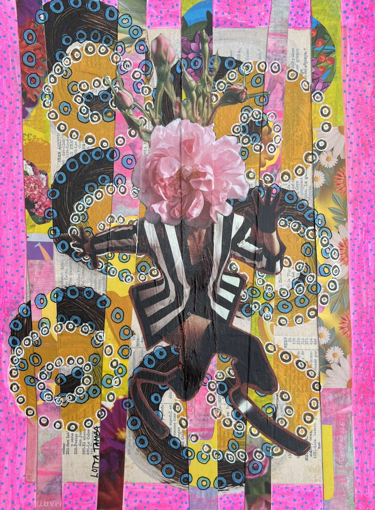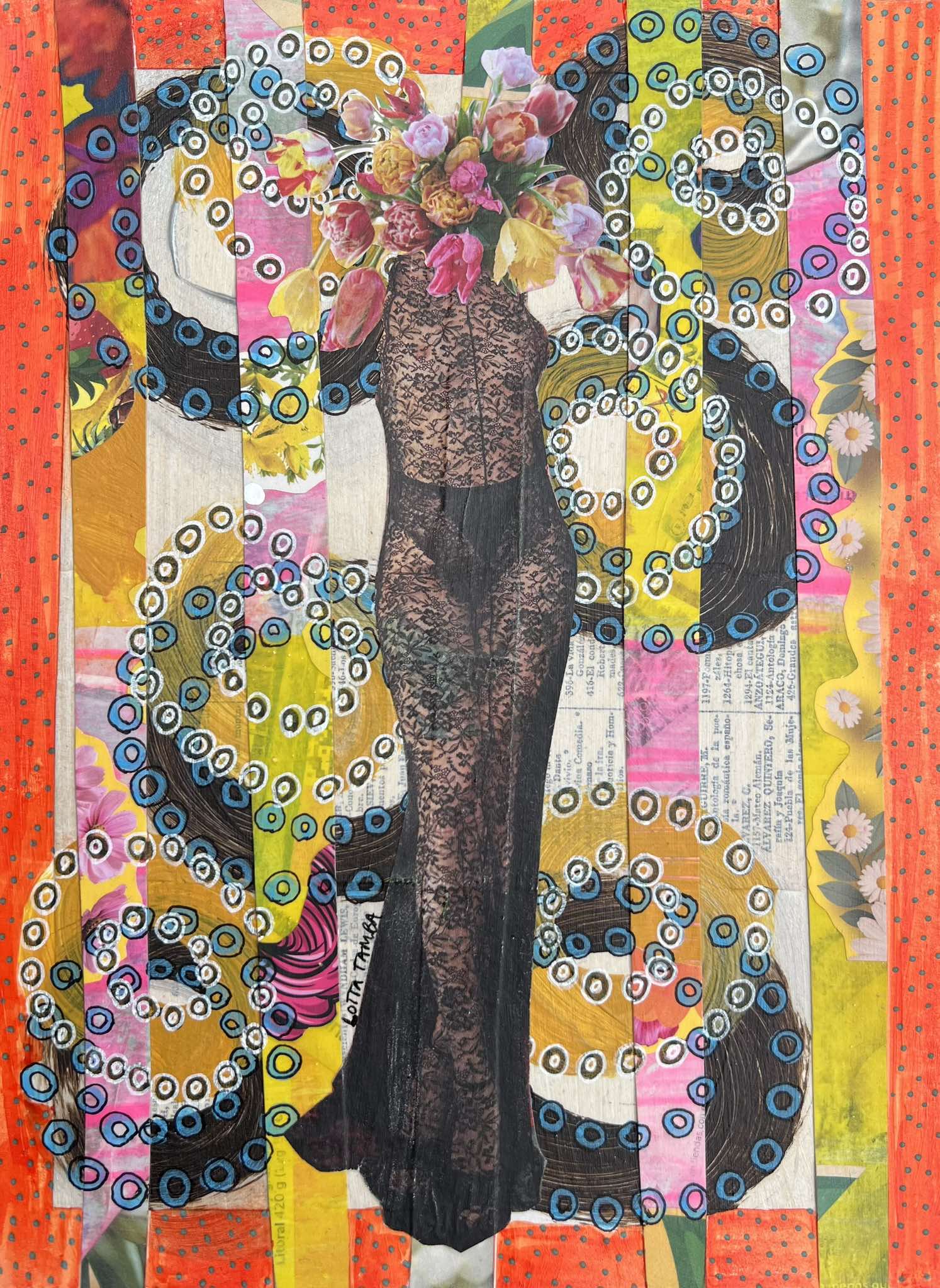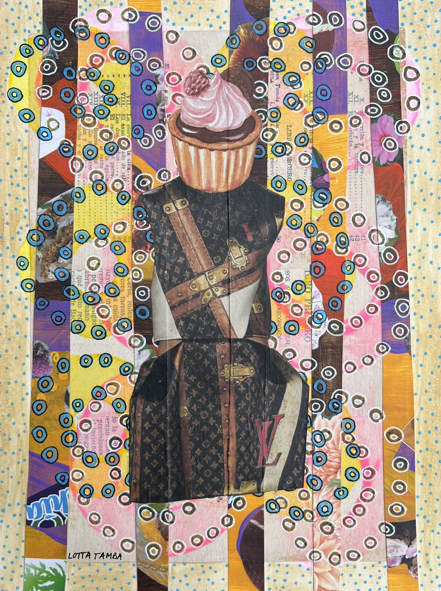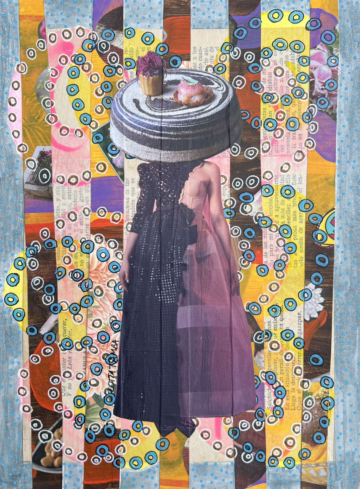 Det här är en serie collage art där alla karaktärer fått något oväntat till huvud – I de första verken blev det en blomma… eller ett bakverk. Det kan ses som estetiskt coola och roligt och ren fantasi…. Men det finns en djupare mening…